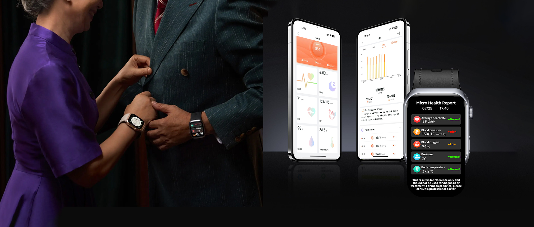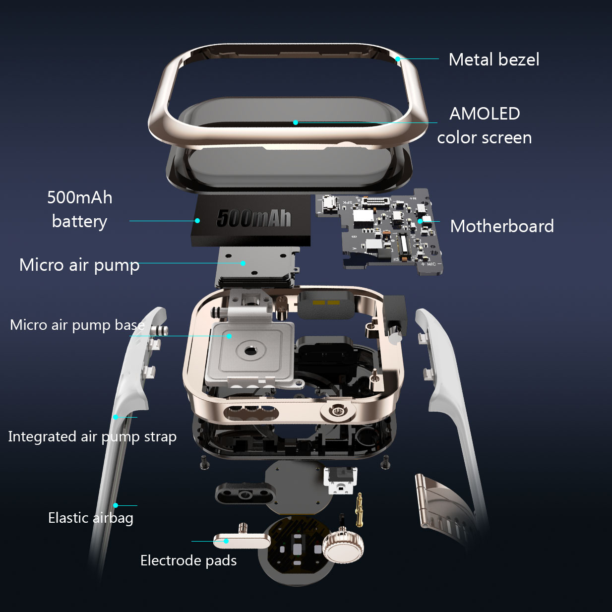 | Material & Finish | Frame: Metal Alloy; Back Case: PC+ABS+Medical-grade High-performance Conductive Glass; Strap: Eco-friendly Silicone; Airbag: Eco-friendly TPU |