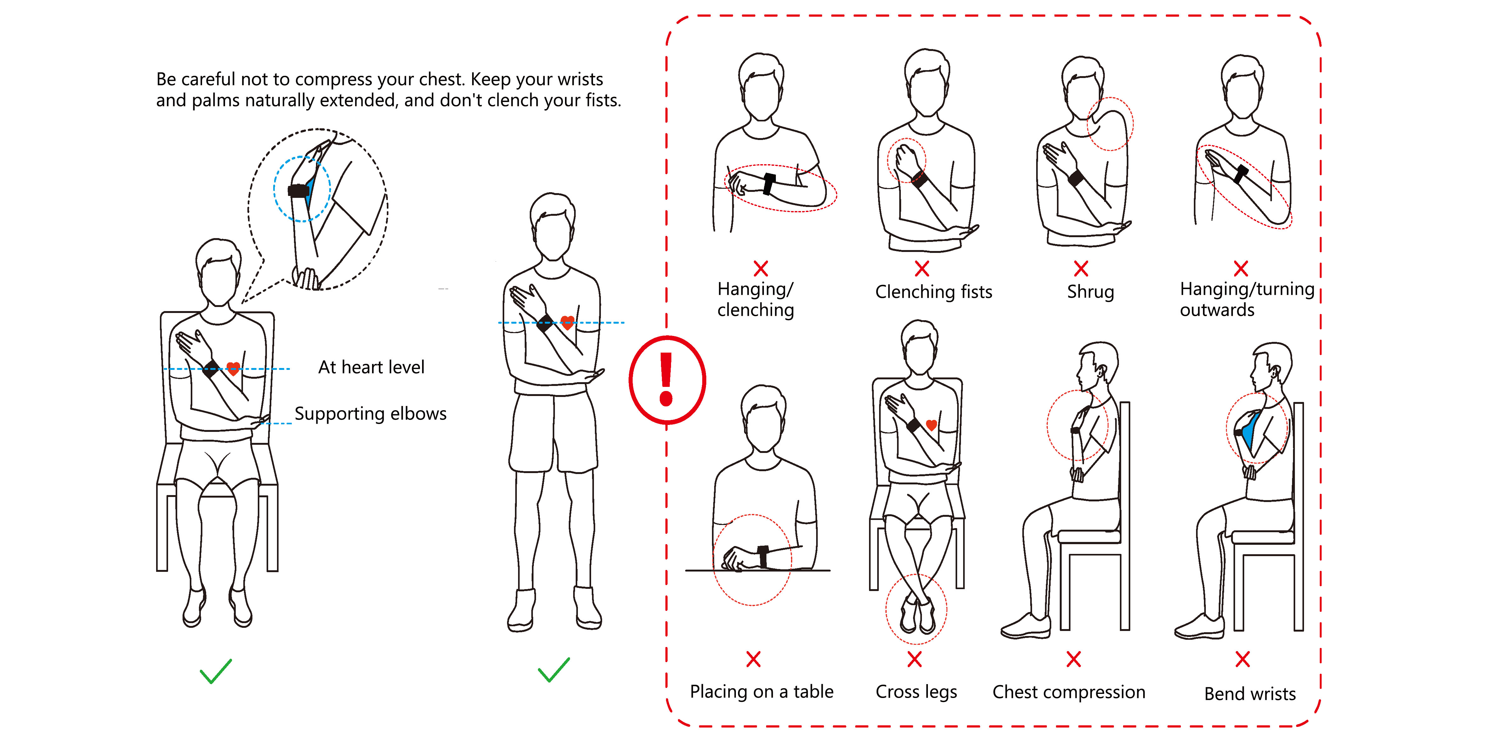 Follow proper procedures: Read the manual carefully and follow instructions regarding posture, rest, and cuff placement.