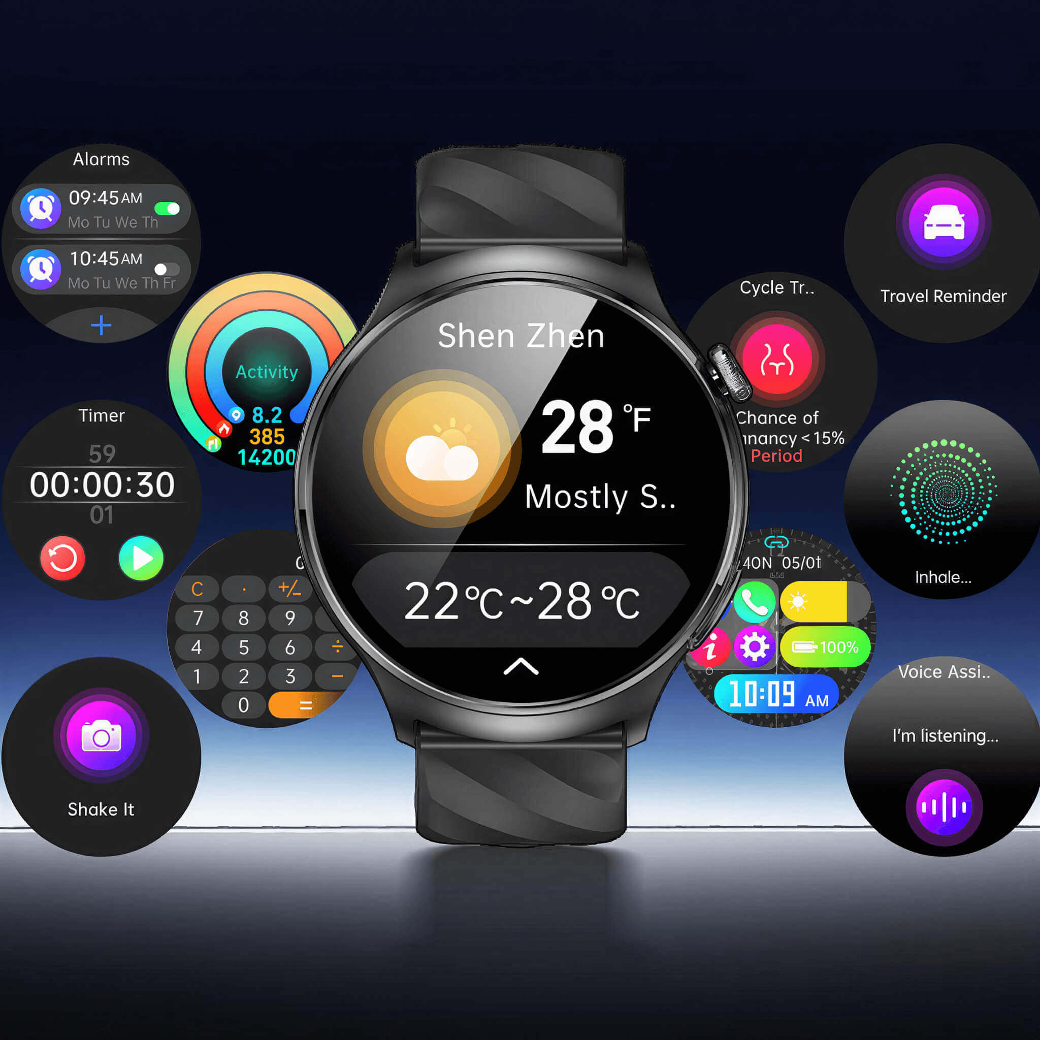 Enjoy a range of convenient functions including Bluetooth music control, calendar access, calculator, alarms, event reminders, shake-to-take-photo, sedentary reminders, and more — all designed to simplify everyday life.